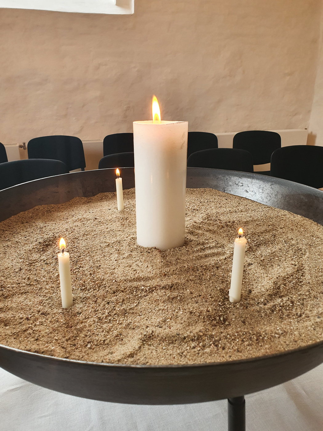 Kirkens nuværende indretning og udseende er resultatet af mange års ombygninger og ændringer; senest i 2020, da bænkene i søndre korsarm blev fjernet og erstattet af løse stole. Søndre korsarm er i dag indrettet til andagtsrum, hvor der er opstillet et bord med et lysfad på. Her er man velkommen til selv at tænde et lys, sætte det i sandet og sidde en stille stund for sig selv.