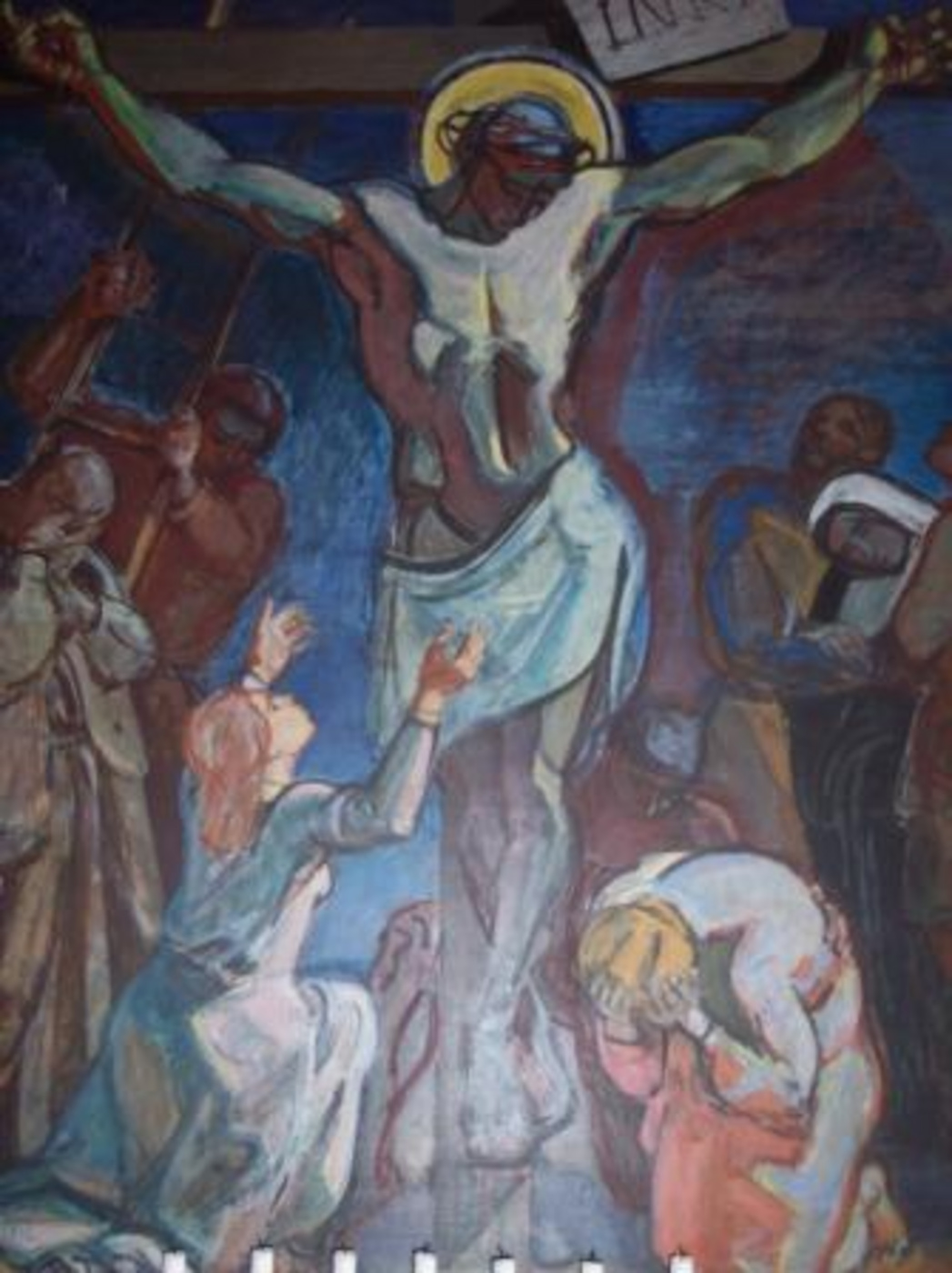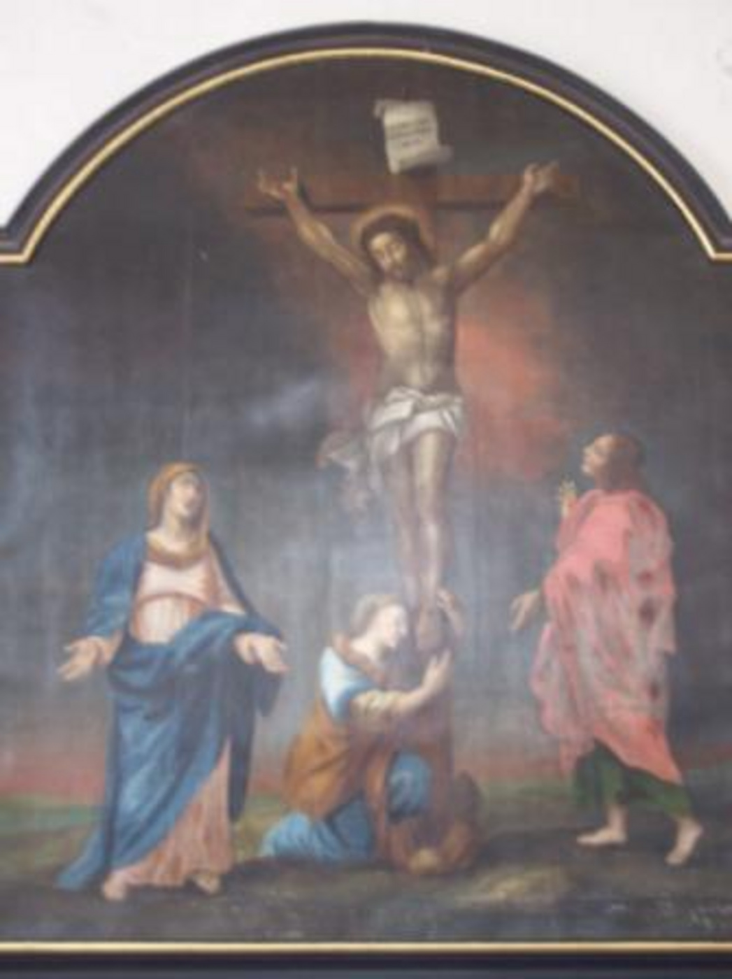 Det tidligere alterbillede findes nu på vestvæggen i den sydlige korsarm. Under en restaurering i 1973 fandt man på bagsiden i blændrammen en blyantindskrift udformet med gotisk skrift: "Gort af nye Eÿler Sniker in (?) Jÿsker (?) og Malet af Jullius Post Levert 1755. RiPaReret af Gustav Pedersen i Amager den 8 juni blev hun færdig aar 1779."