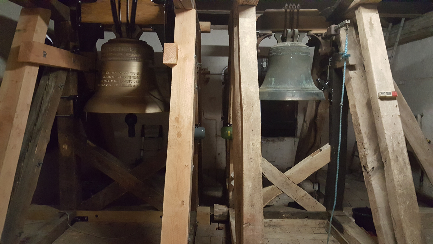 De to klokker kan ses og høres ringe i det her Youtube-klip.